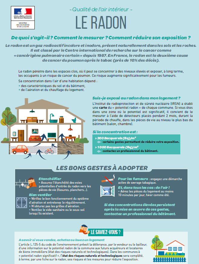 Le radon est un gaz naturel, inodore et invisible, qui peut s’accumuler dans les logements mal ventilés. Notre territoire, en raison de sa géologie, peut présenter des concentrations élevées dans les sols. Seule une mesure permet de connaître son exposition réelle.