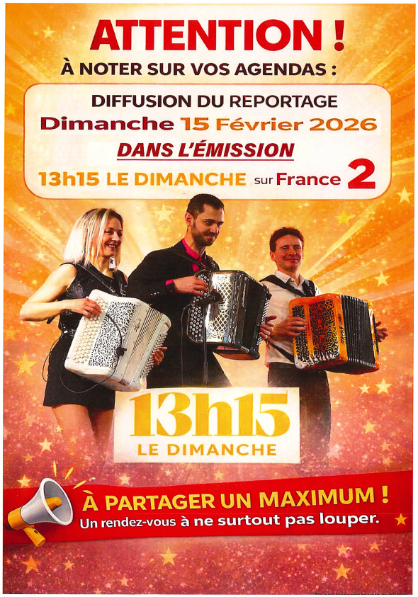 • Le 15/02 Diffusion sur France 2 de l’enregistrement télé du 17/01 lors du thé dansant. 2 février 2026