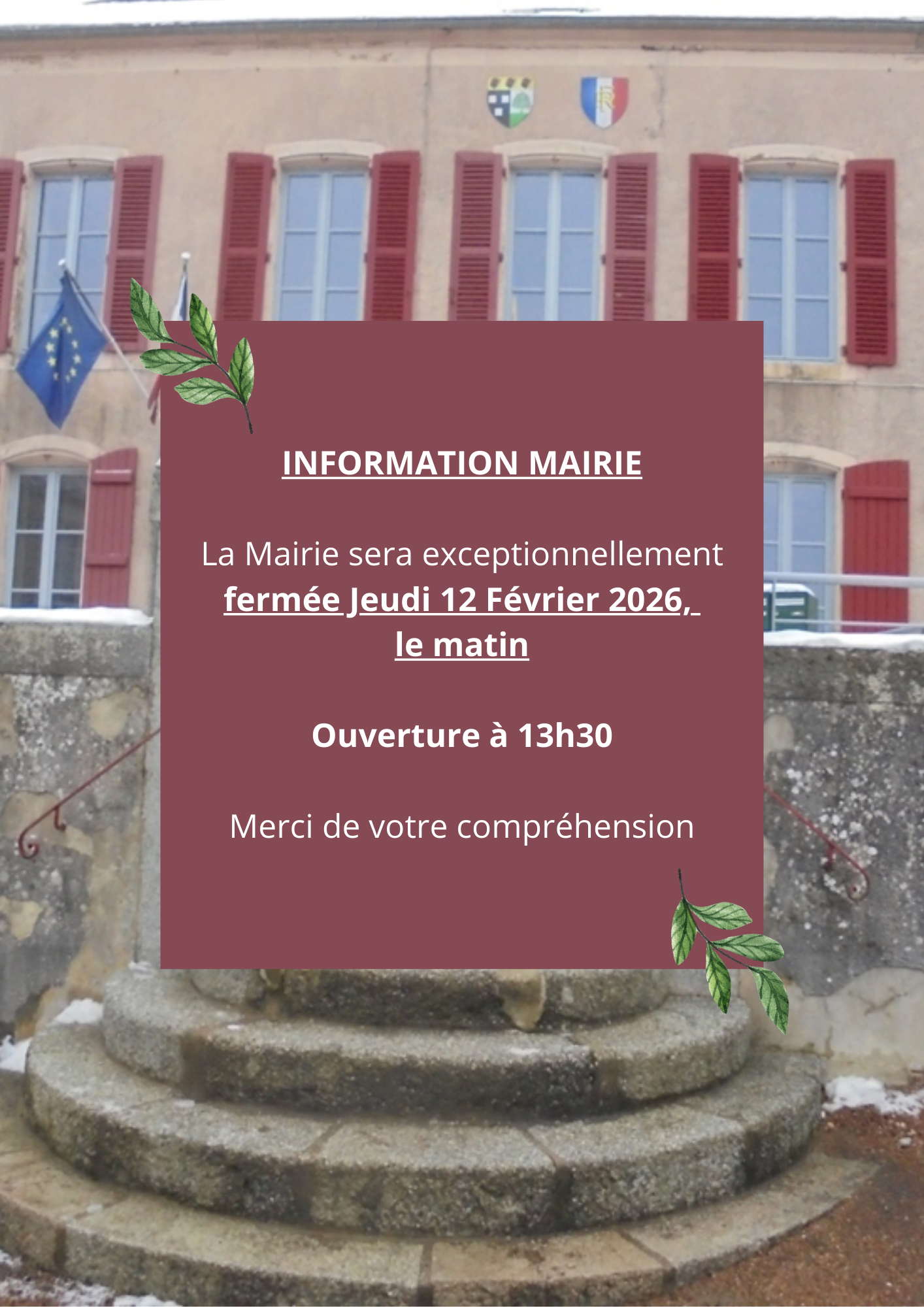 Fermeture exceptionnelle de la Mairie – Jeudi 12/02 le Matin