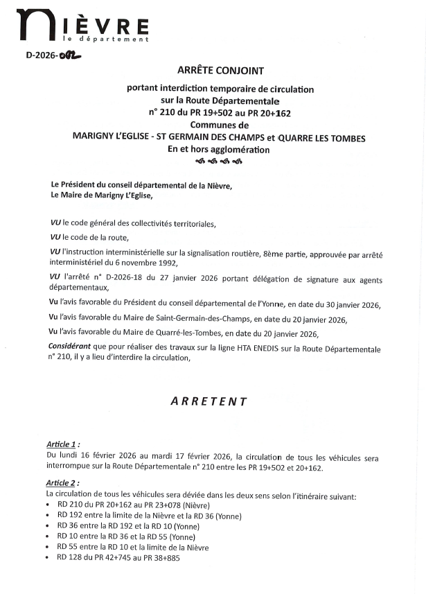 Interdiction temporaire de circulation du 16/02 au 17/02 Julie ROUSSET | 9 février 2026 Divers Mairie